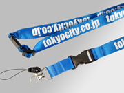 | 印刷 | シルクスクリーン印刷。印刷はネックストラップ紐の予め指定された位置に行う位置決め印刷です。一定の間隔でロゴを繰り返し印刷する、連続印刷とは異なります。 |
