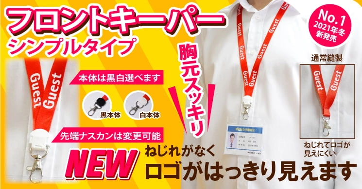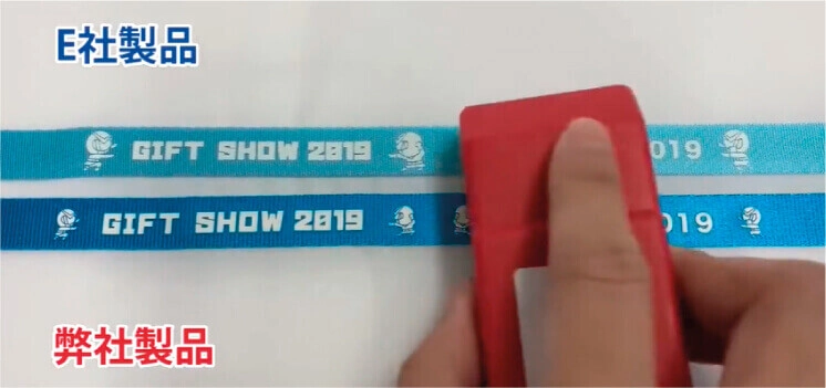 | 印刷 | シルクスクリーン印刷。印刷はネックストラップ紐の予め指定された位置に行う位置決め印刷です。一定の間隔でロゴを繰り返し印刷する、連続印刷とは異なります。 |