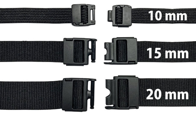 対応紐幅:10mm,15mm, 20mm(黒色のみ)
